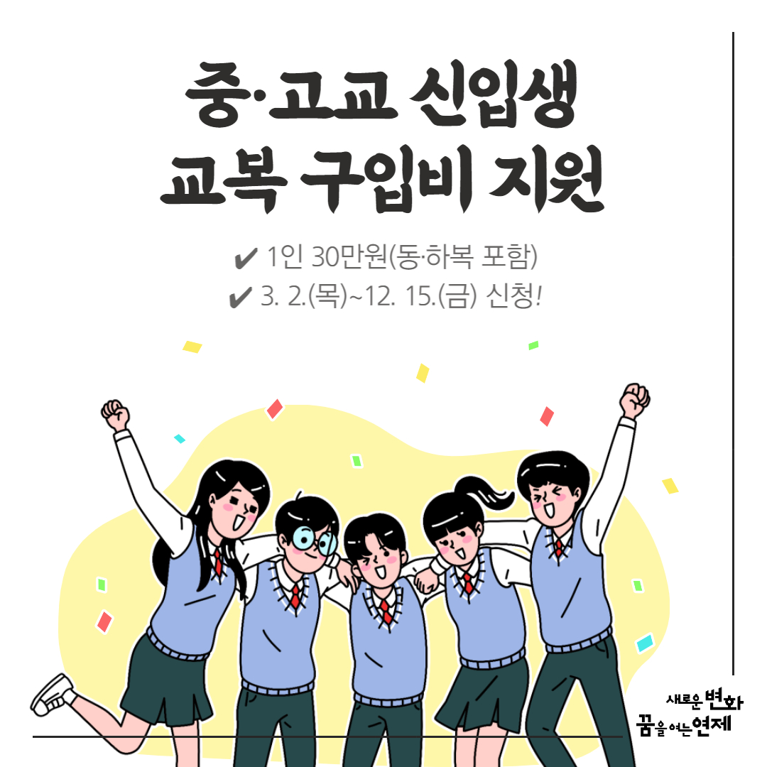 2023년 중·고교 신입생들의 교복구입비를 지원합니다!